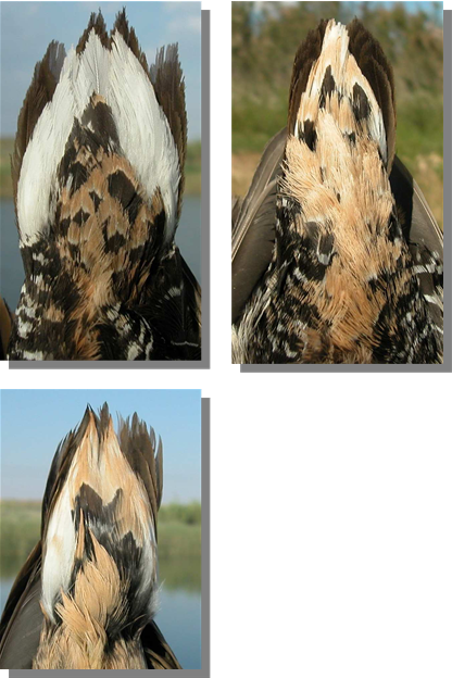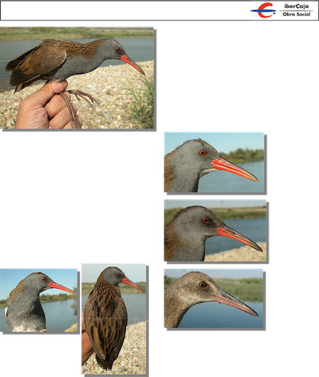 Water Rail. Spring. Upperpart pattern: top left adult (06-VI); top right 2nd year (14-V); left juvenile (14-VII).