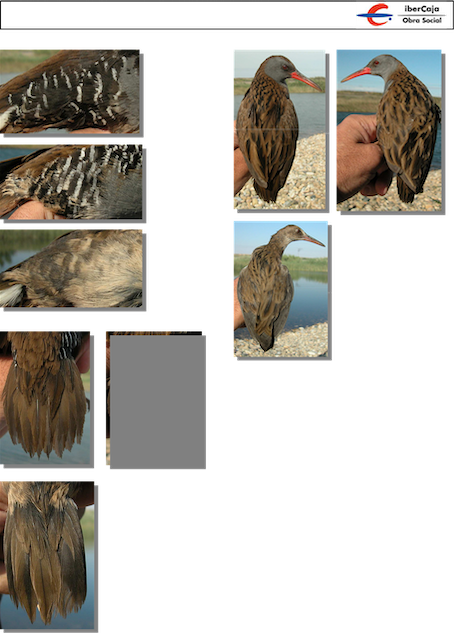 Water Rail. Spring. Upperpart pattern: top left adult (06-VI); top right 2nd year (14-V); left juvenile (14-VII).