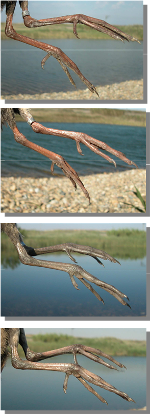 Water Rail. S p r i n g . Pattern of legs. From t o p t o b o t t o m :